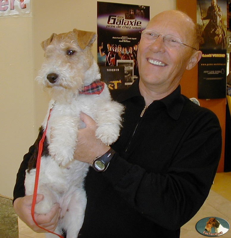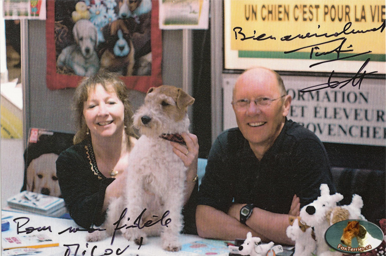 "Twister des Pignons Rouges" dans les bras de M. Jean-Pierre Talbot lors du salon de La Bande Dessiné à l’automne 2004, prêtant main forte à la promotion de l'événement. Merci à M. Talbot qui incarnait Tintin il y a quelques décennies dans les films du même nom.